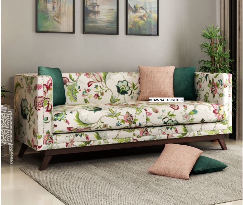 Designer Flower Fabric Sofa Set 3 Seater